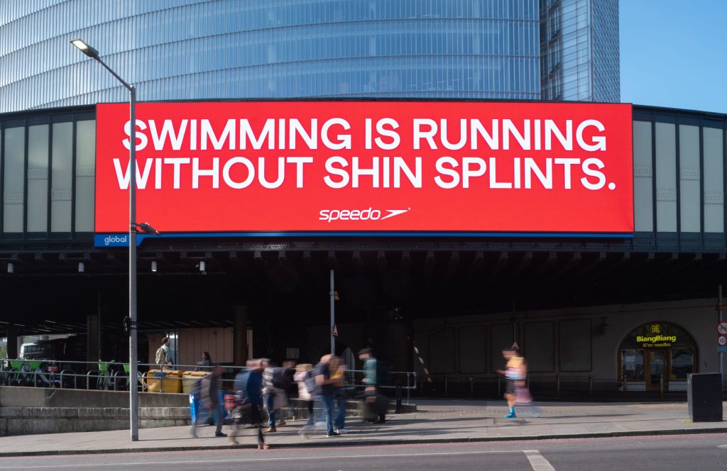 Speedo leveraged marathon day in London with a cheeky OOH and street activation that playfully challenged running culture. By appearing near London Bridge with witty lines about avoiding common running injuries, the brand reframed endurance through a swimming lens while tapping into shared runner fatigue.